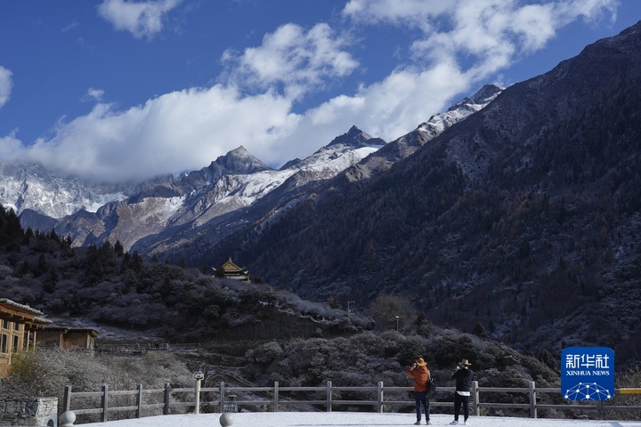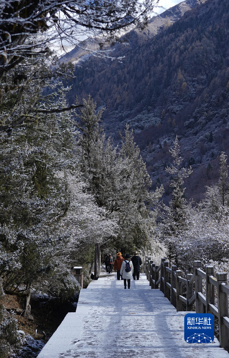 11月8日,游客在四姑娘山長坪溝景區(qū)內(nèi)游覽。新華社記者 馮家順 攝