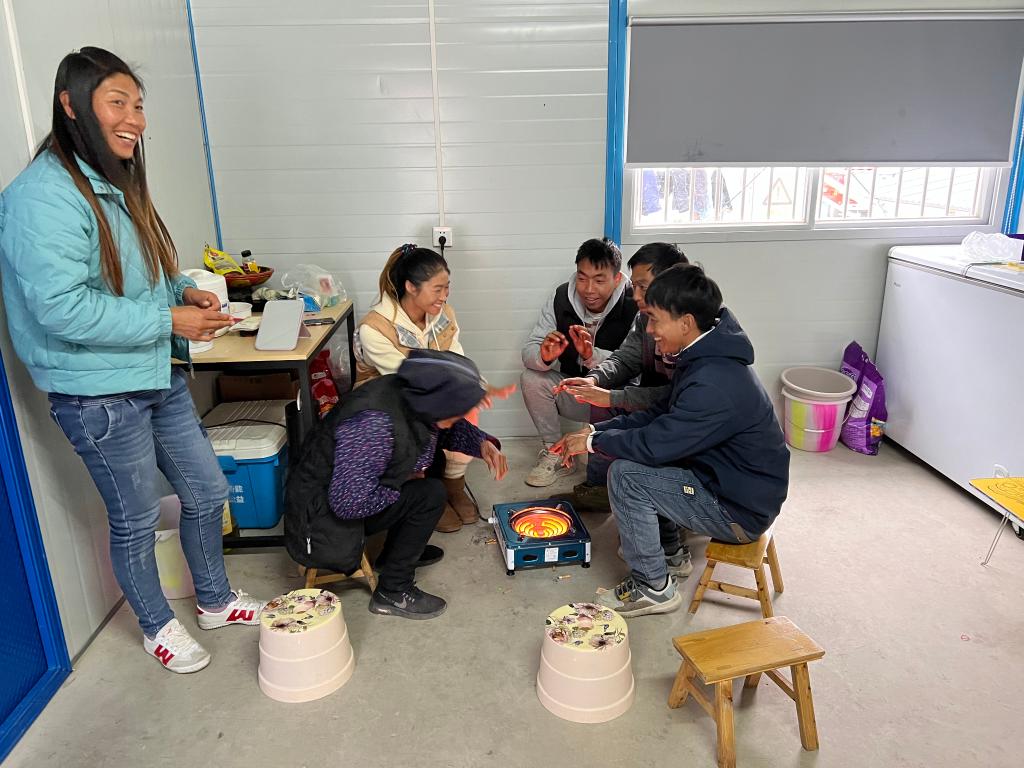記者來(lái)到得妥鎮(zhèn)繁榮過(guò)渡安置點(diǎn)時(shí),正逢群眾集體上山干農(nóng)活。此時(shí)川西高原氣溫已很低,山上下著雪,云霧繚繞。留在安置點(diǎn)內(nèi)的婦女、老人較多,正在室內(nèi)準(zhǔn)備午飯或打掃衛(wèi)生。