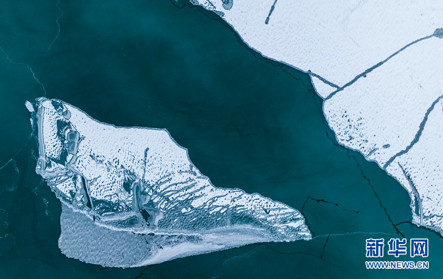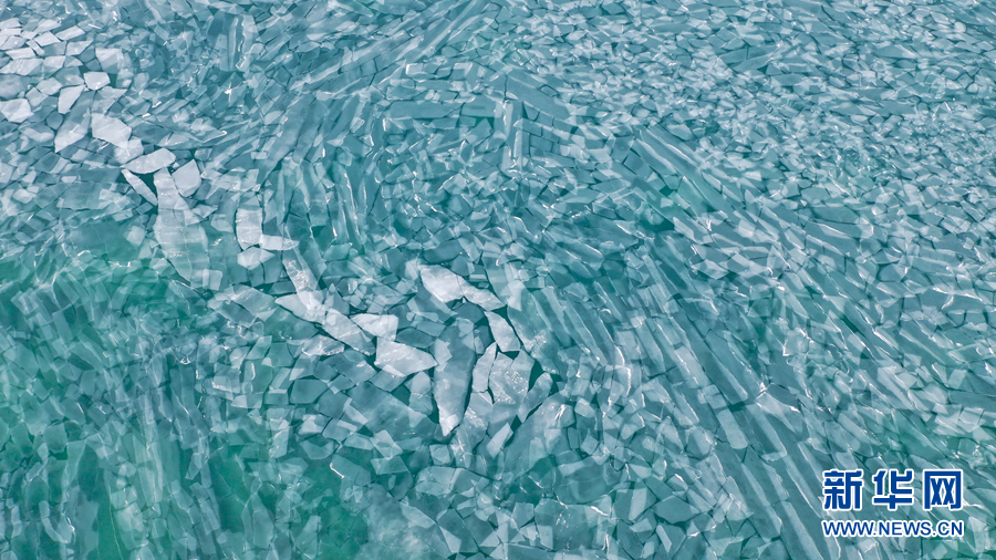 封凍的湖面如同破碎的“玉帶”,形成獨(dú)特的景觀。新華網(wǎng)發(fā)(宋忠勇 攝)