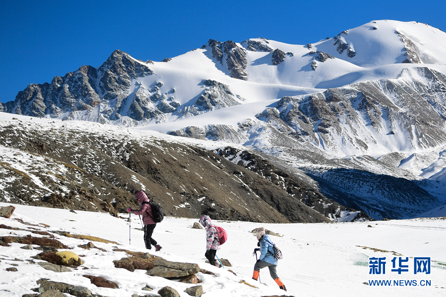 2022年1月1日,登山愛好者攀登崗什卡雪峰。新華社記者 張龍 攝