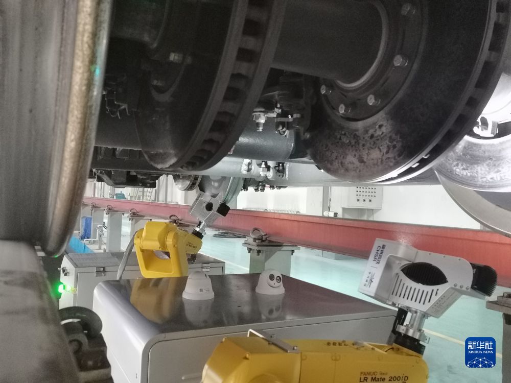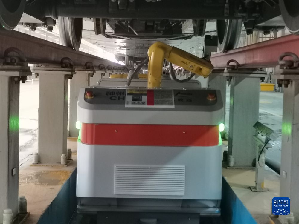 動車組智能檢修機器人在車底工作。新華社記者 解統(tǒng)強 攝