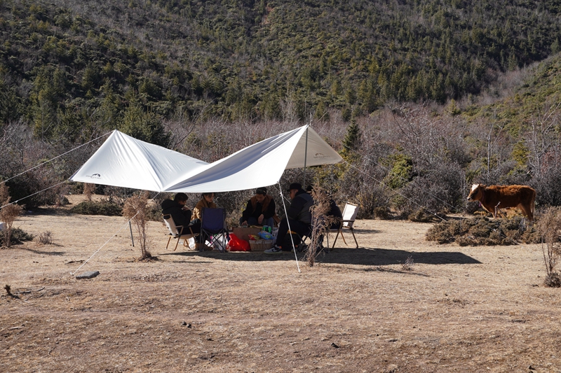 “我是一個資深露營愛好者,上一個冬季,我就在朋友圈里看到朋友來到香格里拉露營,當時就覺得這種露營方式很新穎,香格里拉冬季的美景也立馬吸引了我,因此今年很早就在規(guī)劃到納帕海露營了,冬季露營最大的魅力是人少蟲少,非常安靜,在野外入耳的只有風聲,這樣的體驗會給我興奮感和享受感,讓我感受到生命力?!闭诖顜づ竦挠慰袜嵟d說。