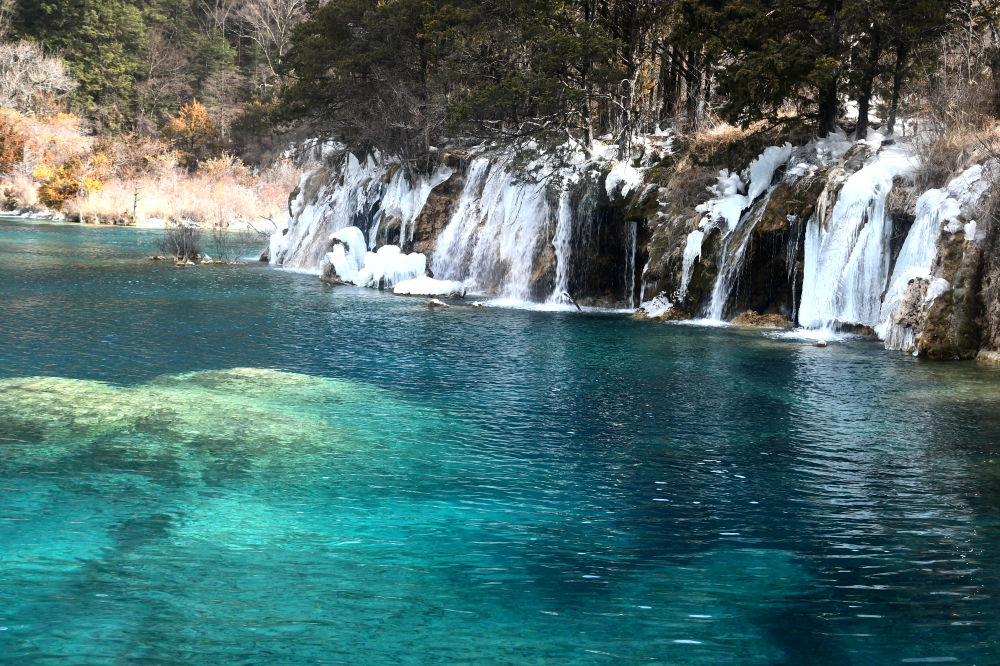 隆冬時(shí)節(jié),在世界自然遺產(chǎn)地九寨溝,皚皚白雪為她披上一身銀裝,淡藍(lán)色的冰瀑也增添了幾分靜謐。冬日陽光明媚,川西高原上湛藍(lán)的高山湖泊與白雪交相輝映,讓被譽(yù)為“童話世界”的九寨溝更加迷人。