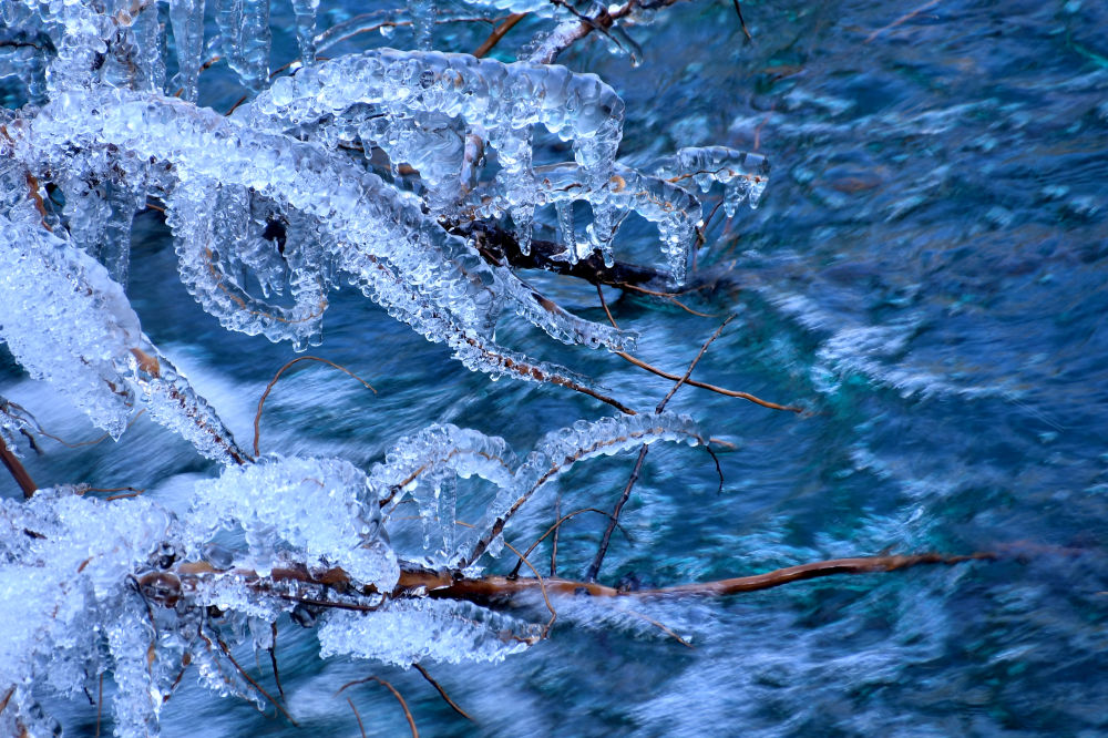 “潔凈的空氣和水是形成藍(lán)冰的基礎(chǔ)條件,隨著氣溫持續(xù)降低,冰層厚度越厚,藍(lán)冰也會(huì)格外明顯。”肖維陽說。