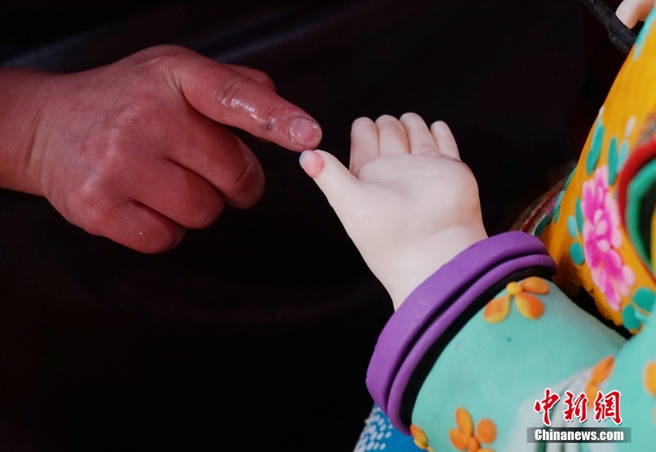 2月1日,在位于青海省西寧市湟中區(qū)境內(nèi)的藏傳佛教名剎塔爾寺內(nèi),藝僧正在制作酥油花局部。