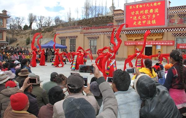 4月13至14日,四川甘孜州歌舞團(tuán)的藝術(shù)家們走進(jìn)理塘縣中木拉鄉(xiāng)和甲洼鎮(zhèn)等地,為2000余藏鄉(xiāng)民眾送去了帶有濃郁藏族風(fēng)情的“文藝大餐”,吸引了許多藏族同胞現(xiàn)場(chǎng)“品味”。[詳細(xì)] -