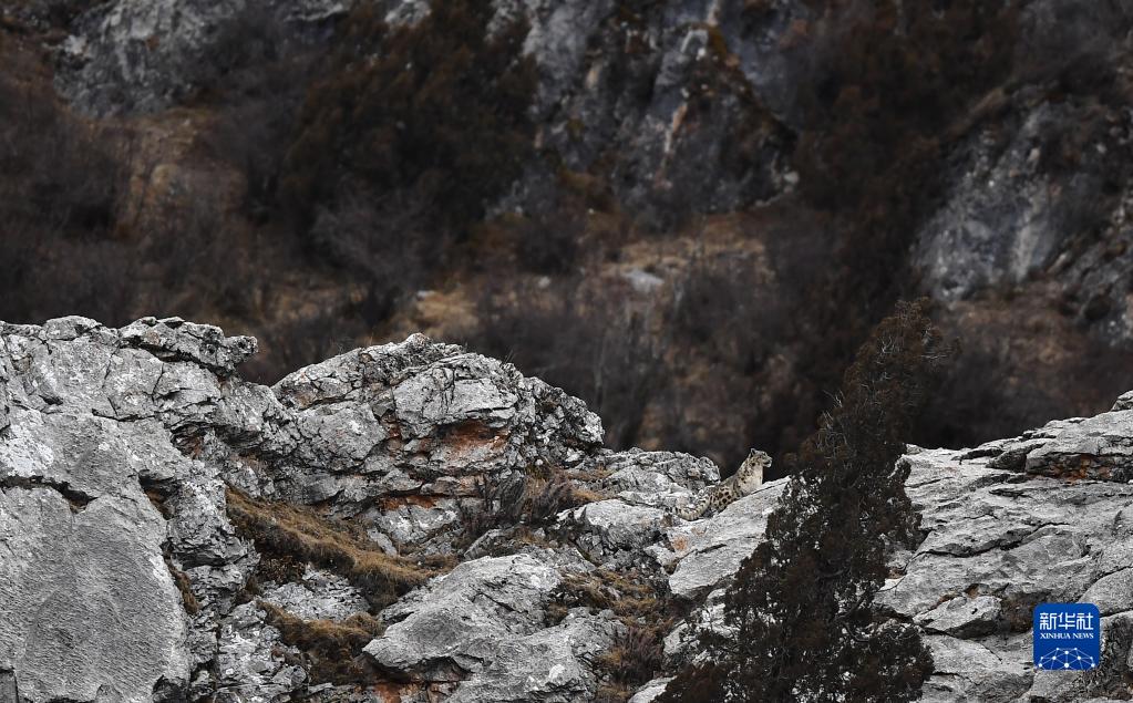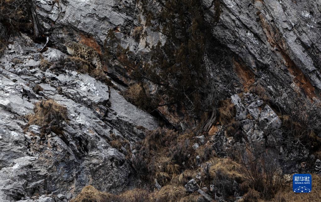 2月21日,在青海省玉樹藏族自治州雜多縣昂賽鄉(xiāng)境內(nèi)的昂賽大峽谷內(nèi),一只雪豹正在活動。新華社記者 張宏祥 攝