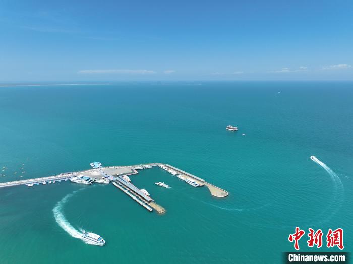 資料圖為航拍青海湖二郎劍碼頭。祁增蓓 攝