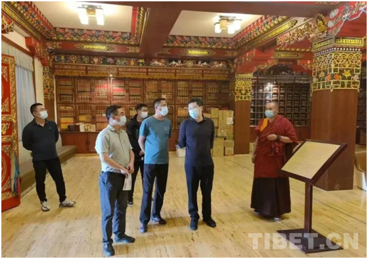 圖為四川省民族宗教委副主任劉向鴻在若爾蓋縣達扎寺調(diào)研民族團結(jié)進步創(chuàng)建“進宗教活動場所”工作