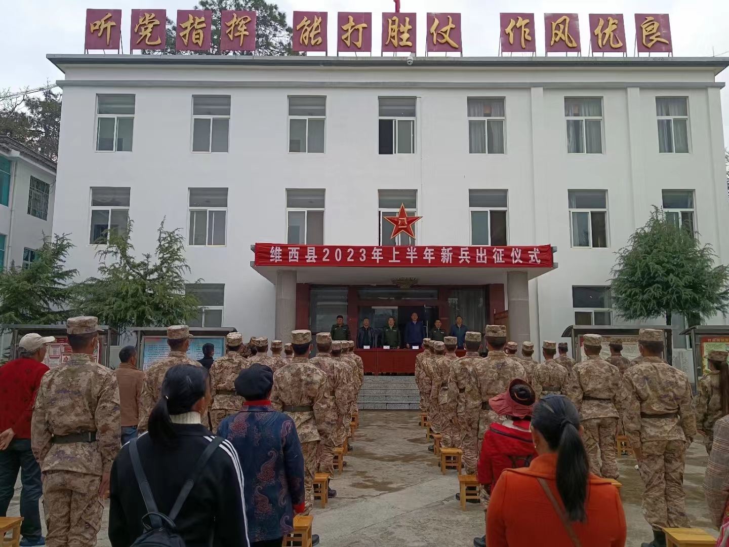 3月15日上午,維西縣舉行2023年上半年新兵入伍出征儀式。儀式上,新兵代表和新兵家屬代表先后作熱情洋溢的發(fā)言,25名新兵們?nèi)盅b整肅,胸戴紅花,將陸續(xù)踏上從軍報(bào)國(guó)、戍邊衛(wèi)國(guó)征程,奔赴軍營(yíng)。入伍新兵們紛紛表示,自己將堅(jiān)持全心全意為人民服務(wù)的根本宗旨,堅(jiān)決服從黨的指揮,嚴(yán)守部隊(duì)紀(jì)律,將報(bào)國(guó)之志化為衛(wèi)國(guó)之行,早日成為一名“聽(tīng)黨指揮、能打勝仗、作風(fēng)優(yōu)良”的新時(shí)代優(yōu)秀軍人。