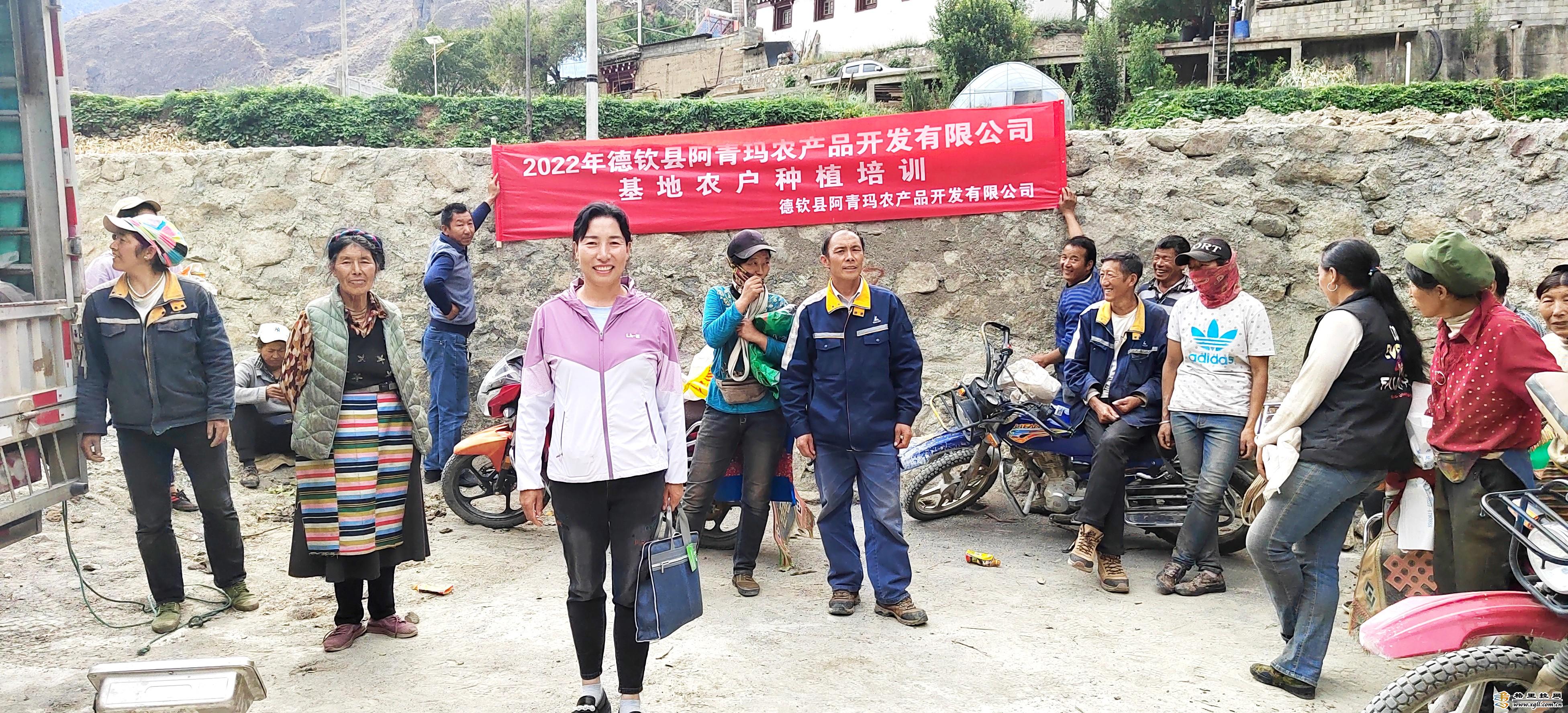 阿青瑪堅持群眾利益優(yōu)先,力爭讓農戶最大程度享受發(fā)展成果。她的公司現(xiàn)有種植基地1500余畝,覆蓋德欽縣奔子欄鎮(zhèn)、霞若鄉(xiāng)、羊拉鄉(xiāng)以及香格里拉市小中甸鎮(zhèn),穩(wěn)定帶動300余戶農戶增收?!肮?基地+農戶”模式運營以來,累計為800余戶農戶帶來350余萬元收入,公司共聘用職工15名,季節(jié)性用工120余名。2021年,在公司帶動下,基地種植戶平均增收3500元。