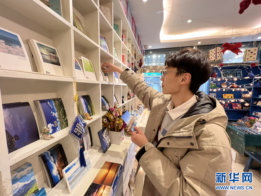 張開心告訴記者,他在莫家街尋找美食時(shí)發(fā)現(xiàn)了這家小店,一個(gè)巨大郵筒很是吸引眼球。走到店內(nèi),充滿特色的文創(chuàng)產(chǎn)品讓他眼前一亮。“高原文化獨(dú)具特色。等到了夏季,我還會(huì)來感受高原美景,跟朋友們?cè)诤1辈菰先鲆?、在青海湖畔騎行、在茶卡鹽湖打卡?!睆堥_心說道。