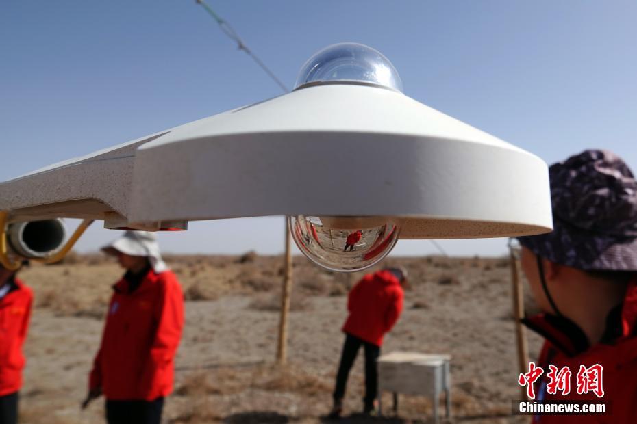 圖為看上去貌似燈泡的科研設(shè)備,其實是觀測站用于研究地氣相互作用的短波輻射通量的觀測探頭。中新社記者 孫自法 攝
