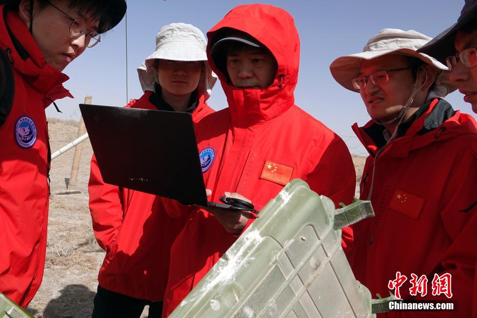觀測站現(xiàn)場,第二次青藏科考隊員、中科院空天院團隊一行現(xiàn)場查看觀測數(shù)據(jù)。中新社記者 孫自法 攝