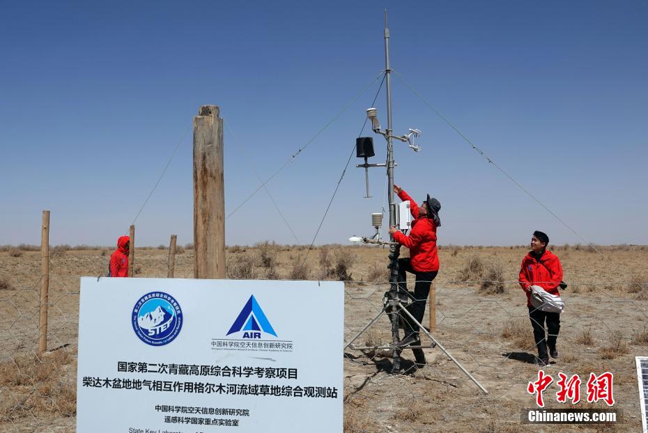4月9日,中國第二次青藏高原綜合科學(xué)考察(第二次青藏科考)“西風(fēng)-季風(fēng)作用區(qū)非均勻下墊面地氣相互作用機載通量觀測”科考分隊、中國科學(xué)院空天信息創(chuàng)新研究院(中科院空天院)科研團隊組成的先遣隊員一行,來到位于青海格爾木的第二次青藏科考項目“西風(fēng)-季風(fēng)協(xié)同作用及其影響”的柴達木盆地地氣相互作用格爾木河流域草地綜合觀測站,進行數(shù)據(jù)讀取、設(shè)備維護等工作。