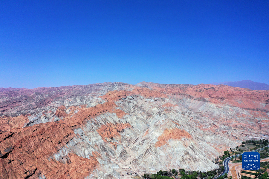 這是4月17日拍攝的青海省海南藏族自治州貴德縣境內(nèi)的丹霞地貌(無人機照片)。新華社 趙玉和 攝
