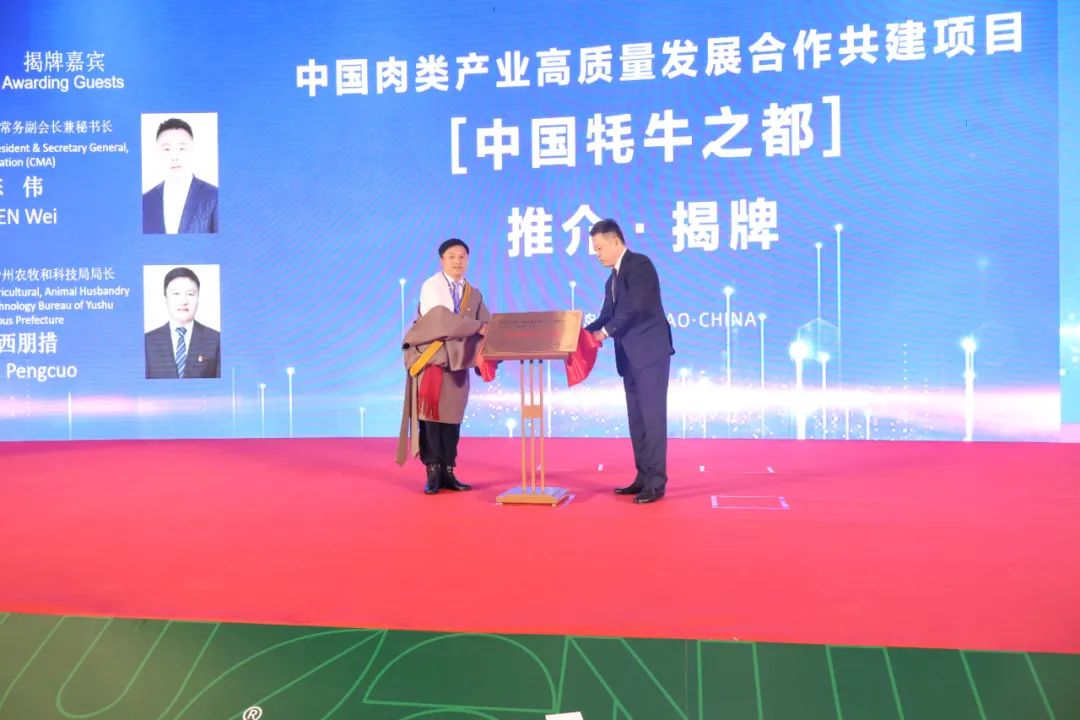 大會(huì)期間,中國(guó)肉類協(xié)會(huì)與青海玉樹(shù)州簽署了中國(guó)肉類產(chǎn)業(yè)高質(zhì)量發(fā)展合作共建協(xié)議,中國(guó)肉類協(xié)會(huì)、青海玉樹(shù)州農(nóng)牧和科技局相關(guān)負(fù)責(zé)人共同為“中國(guó)牦牛之都”合作共建項(xiàng)目推介揭牌。