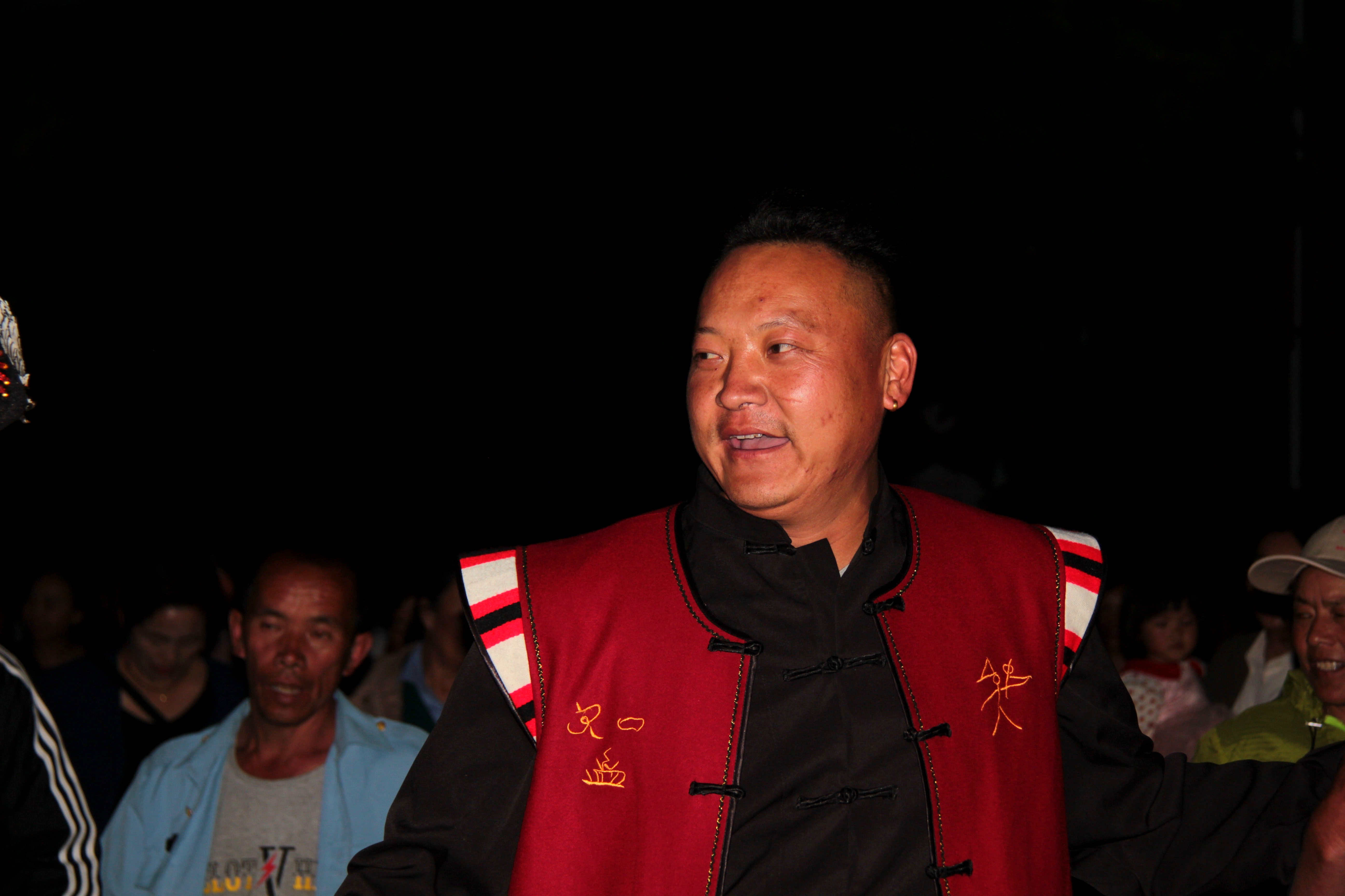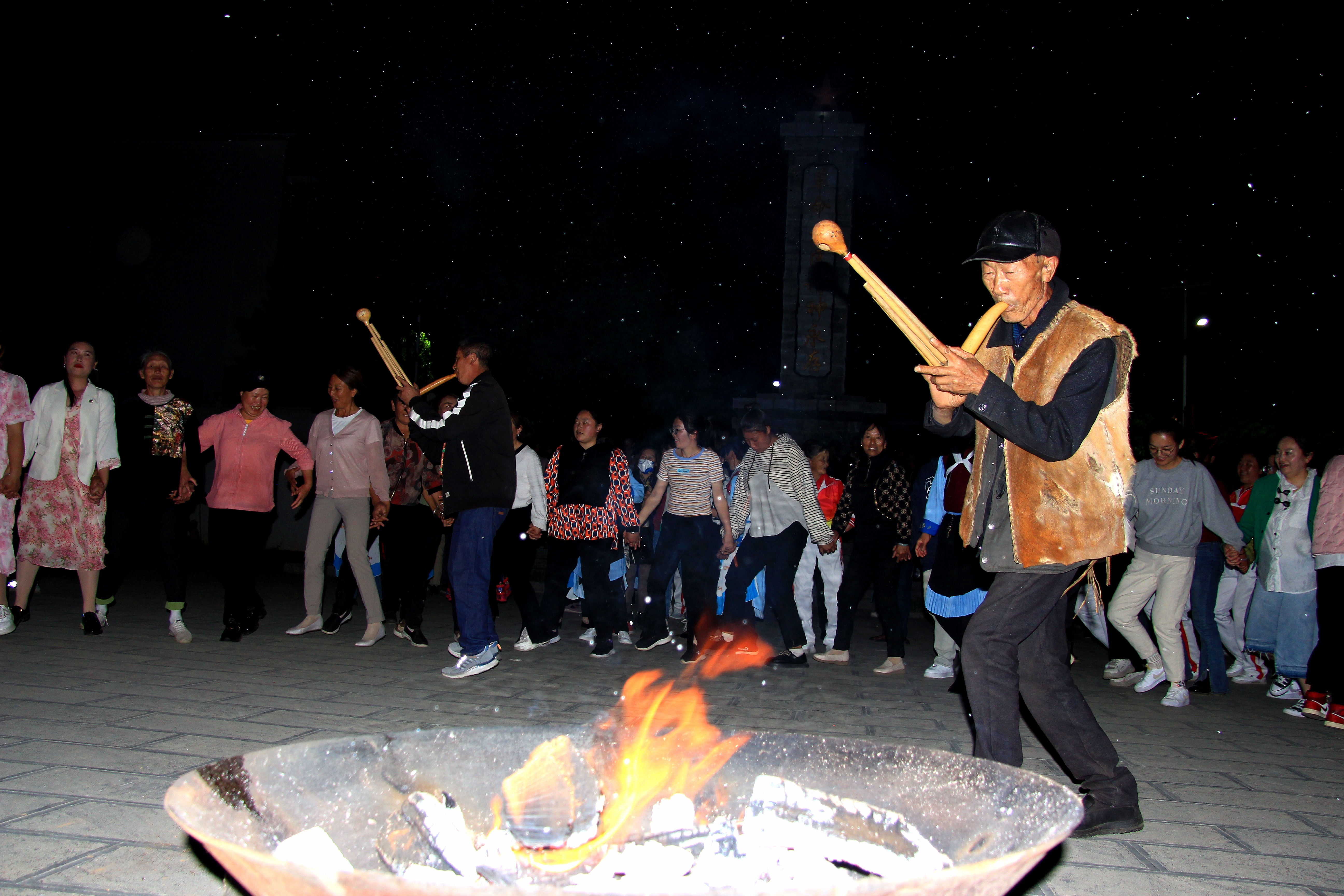 打跳開始了,不斷有圍觀群眾參與到打跳當(dāng)中,打跳選手手牽手把篝火圍了三四圈,篝火的映照下,大家臉上的笑容又燦爛了幾分。打跳歌曲從勁爆葫蘆絲換到納西三部曲又換到大蠻調(diào),換了無(wú)數(shù)首,而參與群眾仿佛不知疲倦一直激情打跳著,現(xiàn)場(chǎng)非?;馃帷?/p>