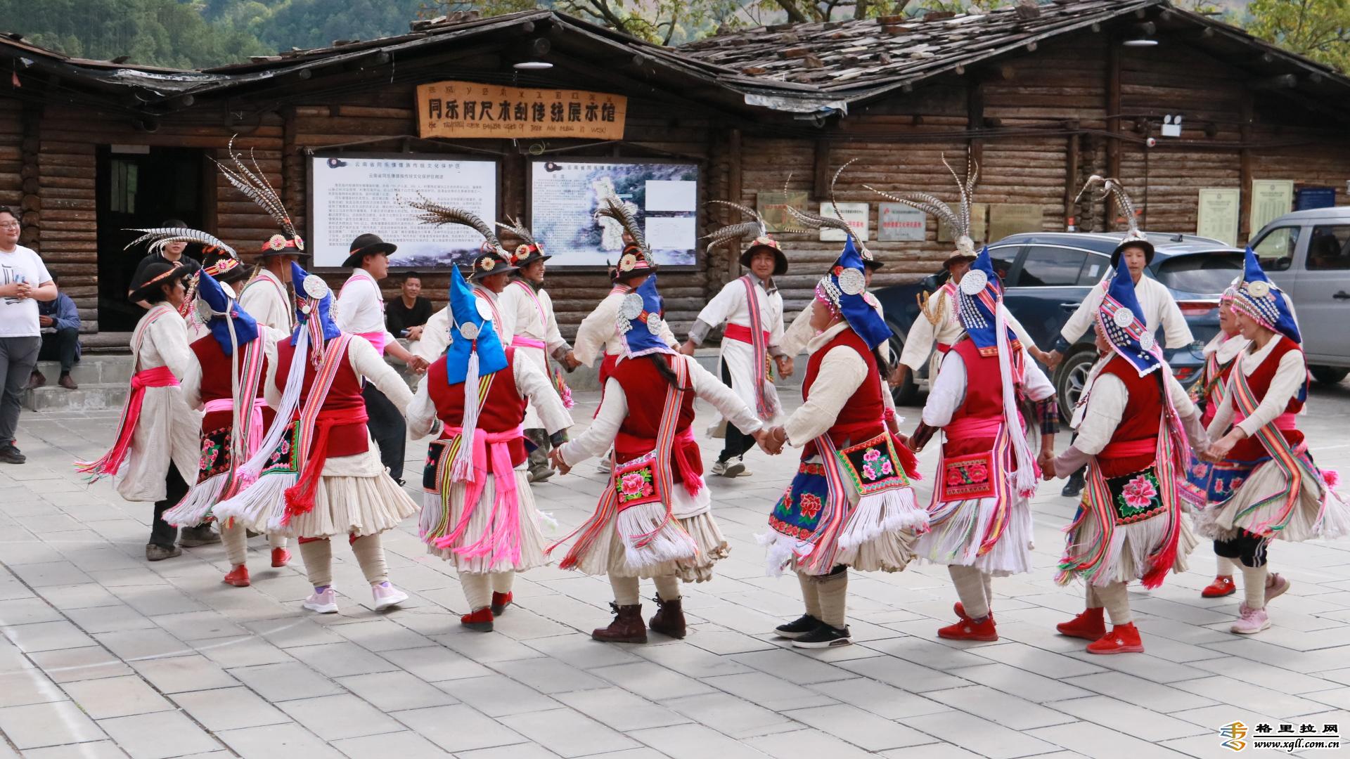 同樂山寨,維西縣保存最為完整的傈僳族傳統(tǒng)村落,村寨建筑多為木楞房,用木頭搭建而成,不上漆、不用鐵釘,取材自然,構(gòu)造簡單,呈現(xiàn)出自然樸實之美。當(dāng)?shù)乩圩迦罕娭辛鱾髦环N自娛自樂的舞蹈,名為阿尺目刮,意為山羊的歌舞。如今,游客們只要來到同樂山寨,就有一群身著艷麗民族服飾的傈僳族群眾,手挽著手,踏著歡快的節(jié)拍,迎接他們的到來。