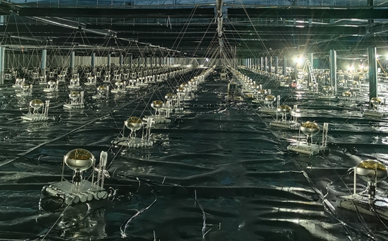 LHAASO裝置WCDA三號(hào)水池內(nèi)安裝完成的光電倍增管。中科院高能所供圖