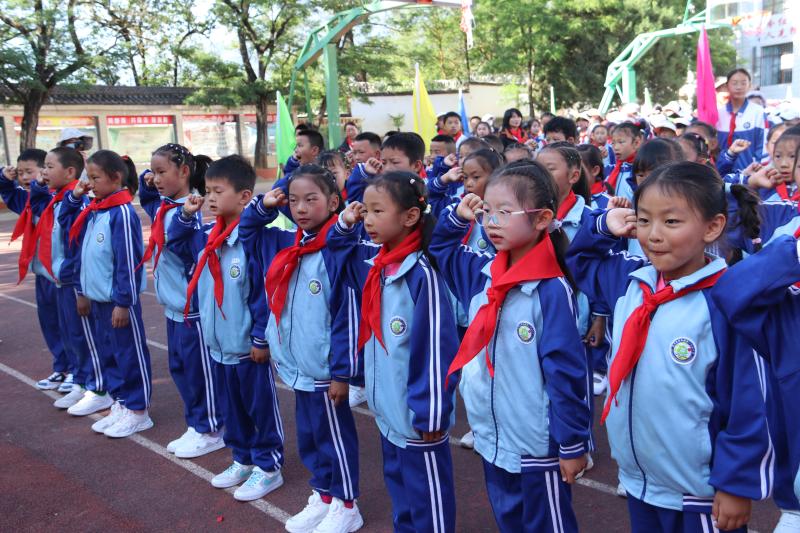上午8點(diǎn)30分,活動(dòng)正式開始,升國(guó)旗、唱國(guó)歌、行隊(duì)禮,孩子們激動(dòng)的心情溢于言表。在新隊(duì)員入隊(duì)儀式上,共有138名學(xué)生加入光榮的中國(guó)少年先鋒隊(duì)組織,老隊(duì)員們?yōu)樗麄兣宕骷t領(lǐng)巾,鮮艷的紅領(lǐng)巾在新隊(duì)員的胸前飄揚(yáng),也在燦爛的朝陽(yáng)下熠熠閃光。隨后,該校對(duì)獲得“2022—2023年度“優(yōu)秀少先隊(duì)員”“優(yōu)秀班干部”“紅領(lǐng)巾一星獎(jiǎng)?wù)聵s譽(yù)”的同學(xué)進(jìn)行了表彰。最后,學(xué)校舞蹈社團(tuán)的孩子們?yōu)榇蠹規(guī)?lái)精彩的歌舞表演,把整個(gè)活動(dòng)推向高潮。 (張燕 攝影報(bào)道)