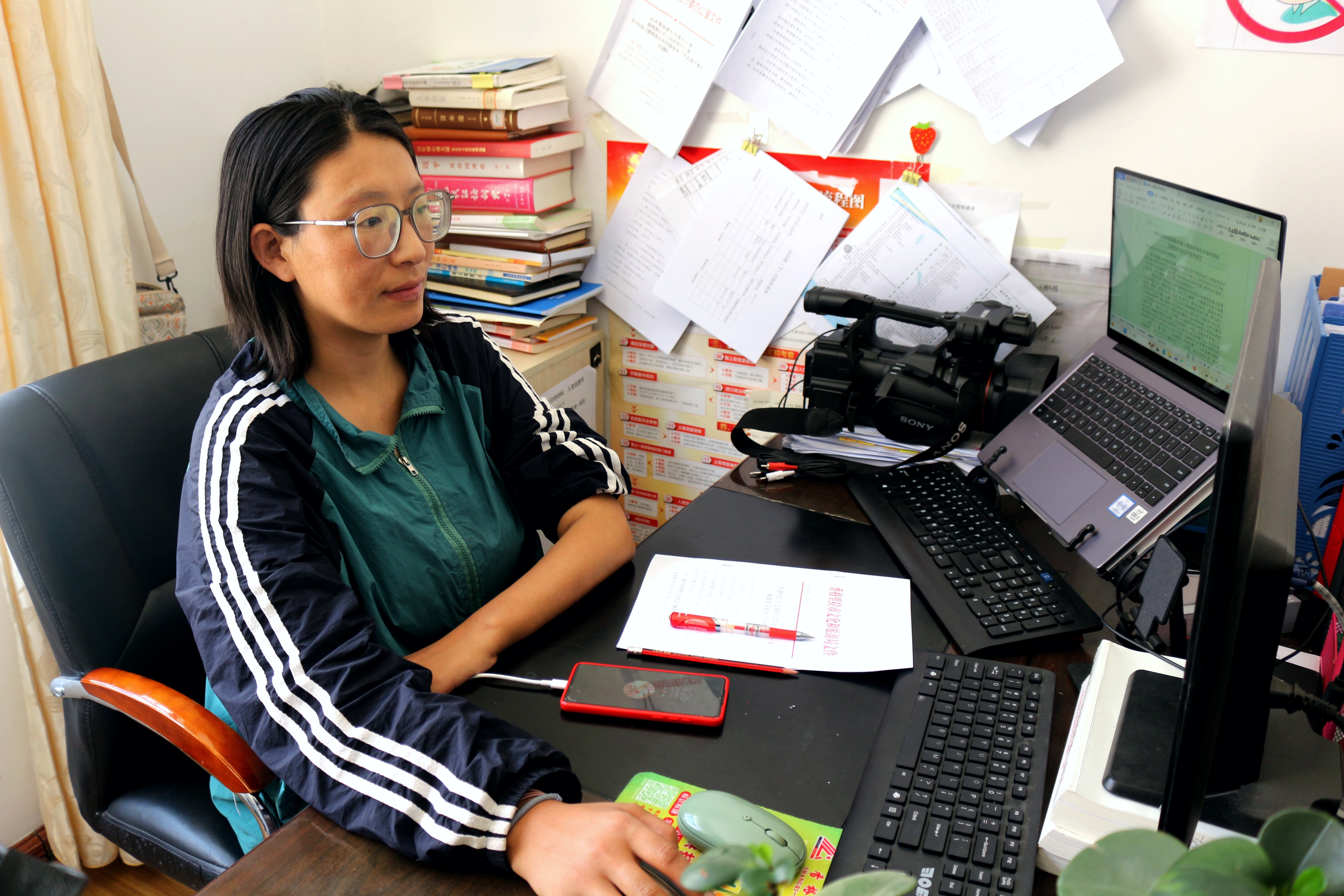 提起次拉姆,同事們紛紛豎起大拇指?!按卫饭ぷ鞣浅UJ(rèn)真,是我們學(xué)習(xí)的榜樣。”同事七林竹瑪說,2020年,東旺鄉(xiāng)準(zhǔn)備申報(bào)第六批非遺傳承人。次拉姆獨(dú)自一人背著10多斤重的攝像機(jī),到各個(gè)村民小組找尋合適的非遺傳承人。經(jīng)過一個(gè)多月的努力,她找到了合適的非遺傳承人并通過影像的方式將他們的工作和生活記錄下來,這些都是非常珍貴的文化素材。