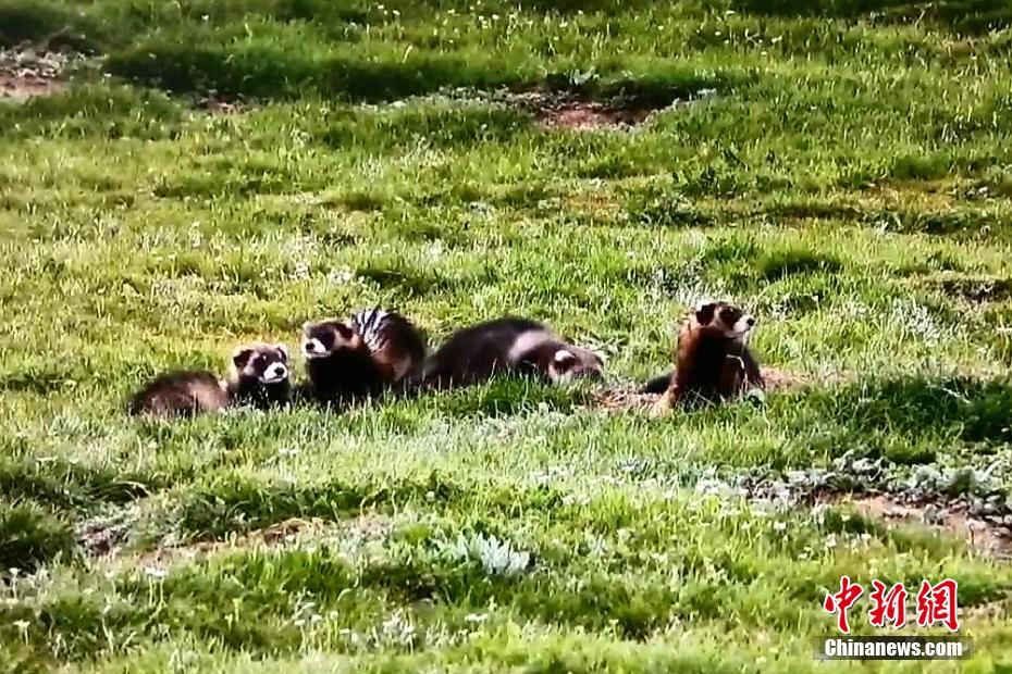 青海祁連草原綠意盎然 黑河源頭艾鼬一家愜意生活