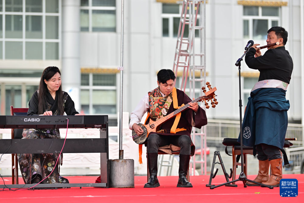 “金燦燦的光芒照亮了雪山之巔……”在藏族傳統(tǒng)樂器的伴奏下,婉轉(zhuǎn)悠揚(yáng)的歌聲仿佛穿透天際,引得路邊的群眾駐足觀看。