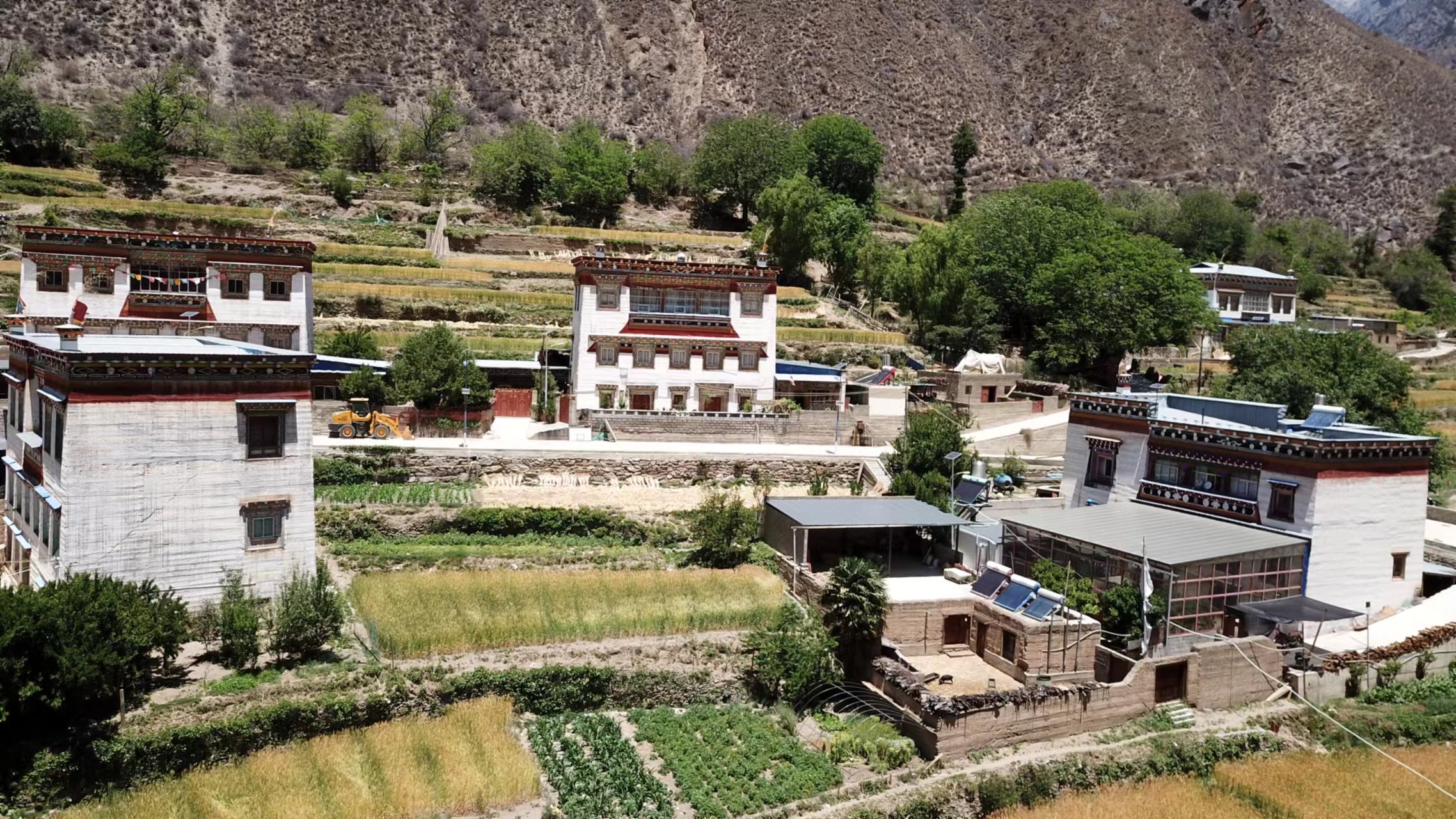 盛夏時節(jié),走進(jìn)香格里拉市東旺鄉(xiāng)上游村日林村民小組,水泥硬化路干凈寬敞,一排排色彩明麗的藏房格外醒目。道路兩旁,金黃麥穗隨風(fēng)搖蕩,綠樹紅花探出院墻,田野里不時傳來一陣陣勞動的笑聲,山村處處展現(xiàn)新氣象。