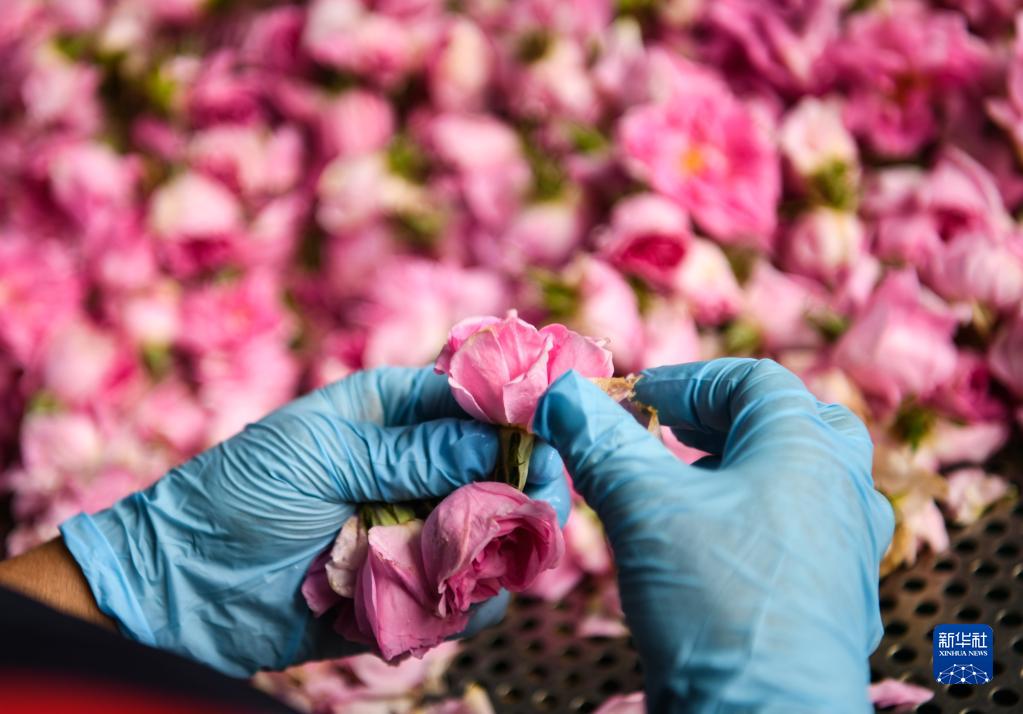 6月15日,在四川省阿壩州小金縣“金山玫瑰”基地,工人正在選花。新華社記者 王曦 攝