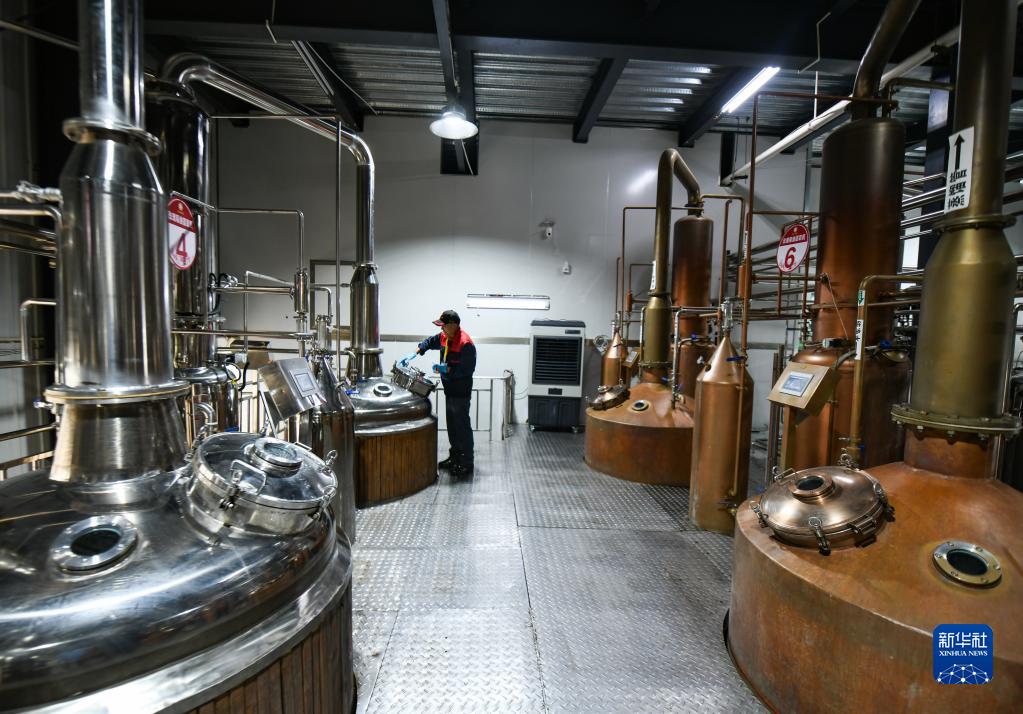 6月15日,在四川省阿壩州小金縣“金山玫瑰”基地,工人操作玫瑰花精油純露萃取機。新華社記者 王曦 攝