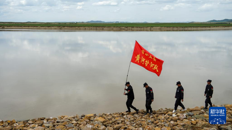 在阿壩州若爾蓋縣,黃河護(hù)河隊隊員正在巡河。新華社記者 尚文意 攝