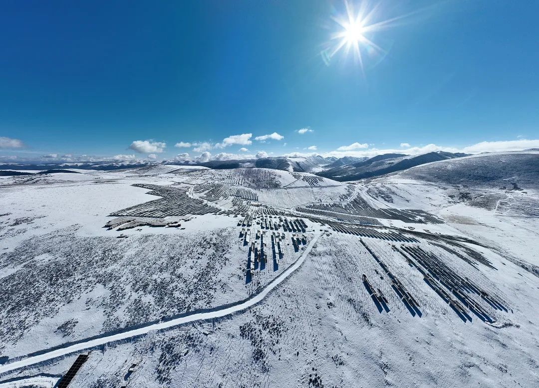 同時,項目工程量大,場址面積約16平方公里,由200多萬塊光伏組件、5000多臺逆變器、300多臺箱式變電站組成。針對系列痛點,為趕在今夏用電高峰前投運,建設(shè)者們創(chuàng)新工程技術(shù)手段,先后攻克10余項技術(shù)難題,創(chuàng)造了大型光伏項目在高寒高海拔地區(qū)冬季連續(xù)大規(guī)模施工的先例。