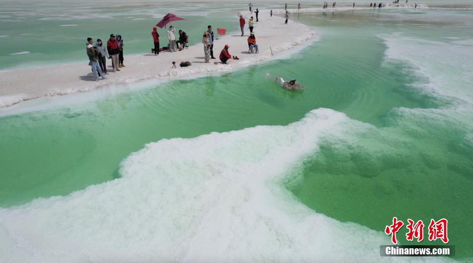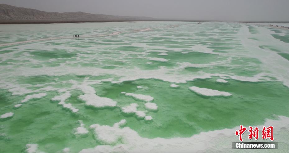夏日,位于青海海西州茫崖市花土溝鎮(zhèn)的翡翠湖宛如色彩絢麗的油畫被描繪在蒼茫的柴達(dá)木盆地上,淡青、翠綠、深綠色的湖水如碎玉散落在大漠戈壁上,充滿生機(jī)。茫崖翡翠湖南依昆侖山,北靠阿爾金山,總面積約26平方公里,屬于硫酸鎂亞型鹽湖,由于所含礦物質(zhì)濃度的不同,致使湖面顏色深淺不一。18日,由中新社青海分社,青海省海西州茫崖市委、茫崖市人民政府共同主辦的“赴蒼茫之崖品人間煙火”青?!っQ?023美食大會在茫崖市正式啟動。近日,活動團(tuán)隊來到茫崖翡翠湖進(jìn)行拍攝采風(fēng)。