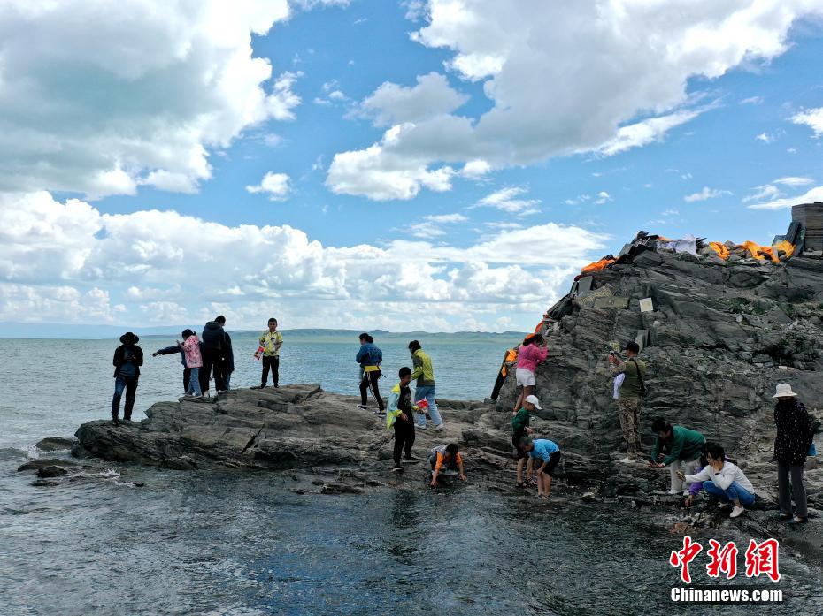 青海湖斷崖湟魚密集扎堆 游客如梭一覽奇景