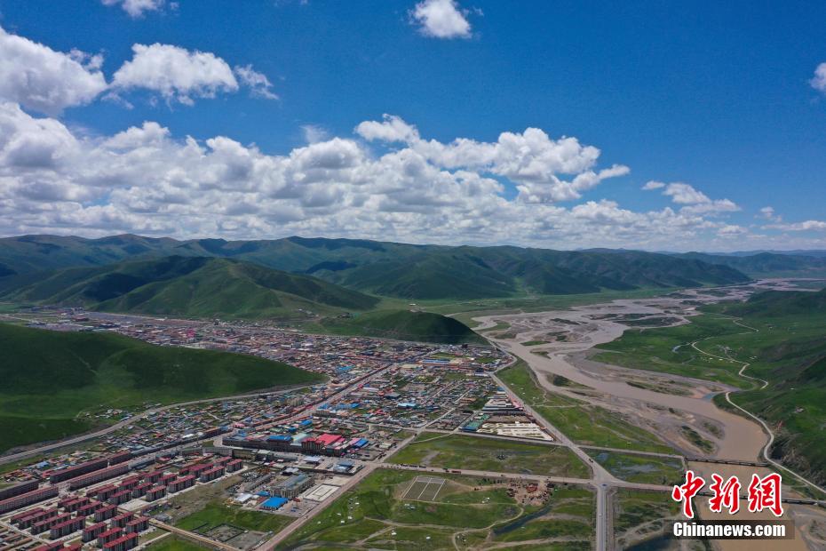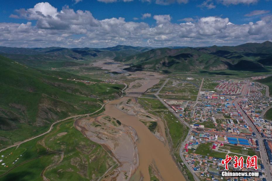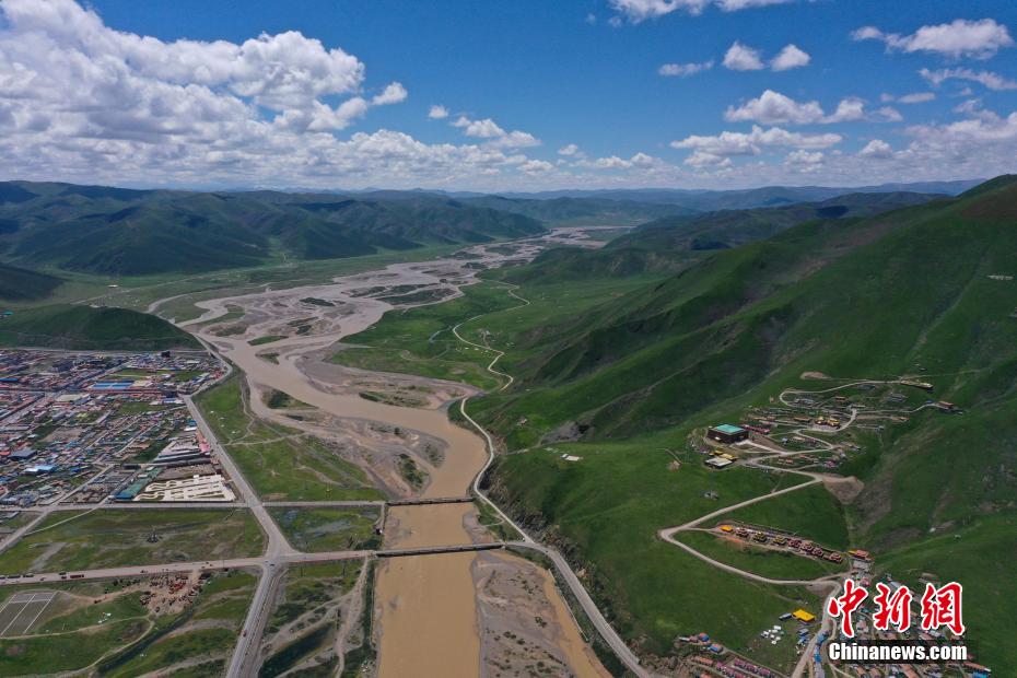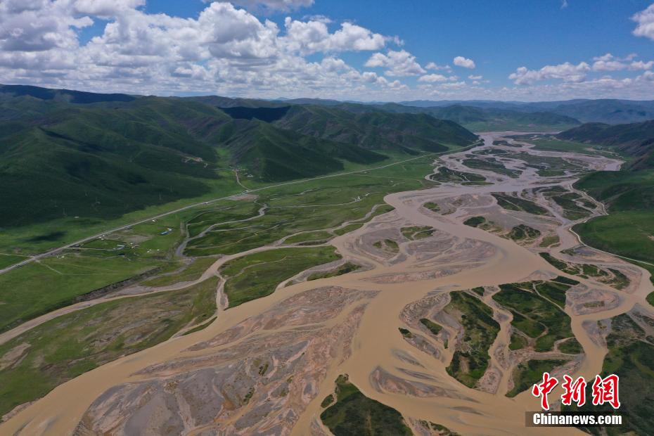 7月28日,航拍青海省果洛藏族自治州達日縣黃河辮狀水系。果洛州達日縣平均海拔在4200米以上,盛夏時節(jié),連綿的山巒披上“綠毯”,黃河流經(jīng)其境內后,在開闊平緩的河道中數(shù)十條水流時而相匯時而分離,交織出巨型的辮狀水系,在群山和城鎮(zhèn)中蜿蜒流淌,形成獨特的高原壯美山河圖。