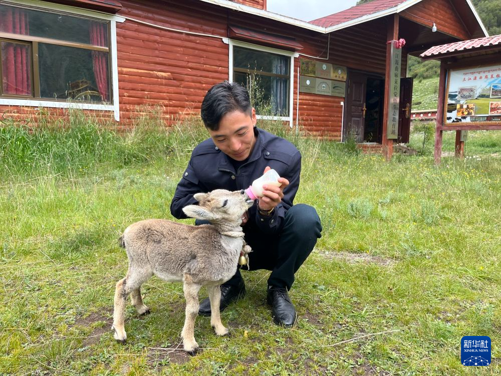 “咩,咩”……門外傳來羊羔的叫聲,旦增拉巴拿著剛剛加熱的奶瓶,向外走去?!斑@只羊羔是我們今年5月從野外救助回來的,當時因母羊被雪豹獵食,小羊落單后被我們發(fā)現(xiàn)了?!钡┰隼蛯⑿⊙驍堅诟?,熟練地給它喂奶,儼然一位“奶爸”。