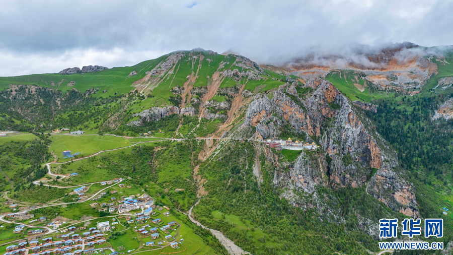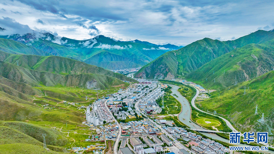 圖為青海省玉樹(shù)藏族自治州玉樹(shù)市的夏日風(fēng)光(無(wú)人機(jī)照片)。新華網(wǎng) 宋忠勇 攝