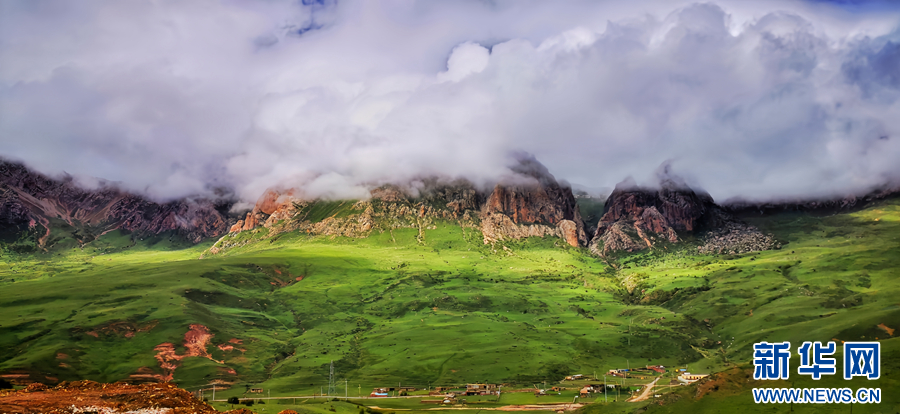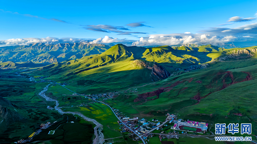 時(shí)值盛夏,青海省玉樹(shù)藏族自治州景色怡人,群山和草原在藍(lán)天白云的映襯下構(gòu)成壯美的畫(huà)卷。