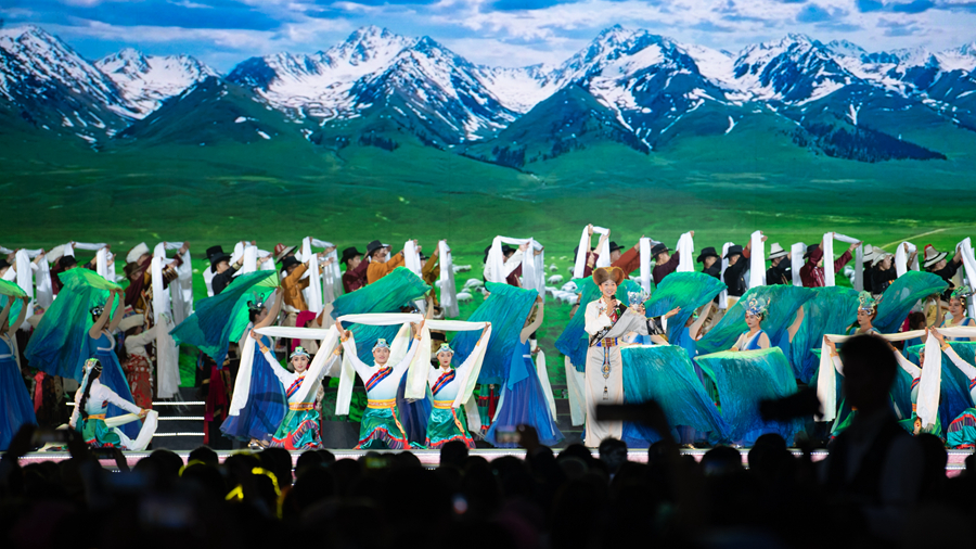 演出現(xiàn)場,燈光秀、曲藝表演、民族歌舞、服飾展演、情景朗誦等綜合藝術(shù)形式輪番上演,為現(xiàn)場觀眾獻(xiàn)上了一場精彩的視聽盛宴。其中,海南州藏族服飾藝術(shù)嘉年華是當(dāng)?shù)刈罹哂绊懥Φ拿褡逦幕放疲彩钱?dāng)?shù)厝罕娚钪械乃囆g(shù)盛會(huì)?;顒?dòng)將傳統(tǒng)藏族服飾品牌與創(chuàng)新服飾時(shí)尚品牌融為一體,通過藏族傳統(tǒng)服飾和現(xiàn)代服飾展演,充分展示了海南州豐富多彩的藏族服飾文化魅力。