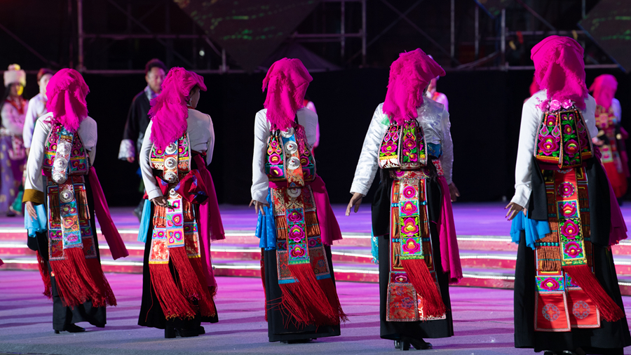 7月31日,慶祝青海省海南藏族自治州成立70周年藏族服飾藝術(shù)嘉年華迎賓晚會(huì)現(xiàn)場。
