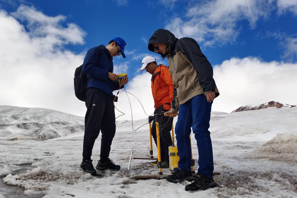 2023年江源綜合科學考察隊近日登上長江源區(qū)的兩條冰川——冬克瑪?shù)妆ê透窭|雪山主峰冰川,使用地質雷達探測冰川厚度,為計算冰儲量積累基礎數(shù)據(jù),透過冰川演化揭示江源高寒地區(qū)的氣候變遷。[詳細] -