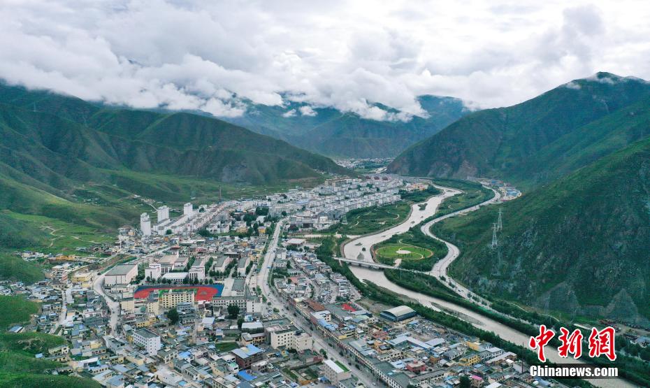 8月4日,航拍青海省玉樹藏族自治州玉樹市城區(qū)。馬銘言 攝