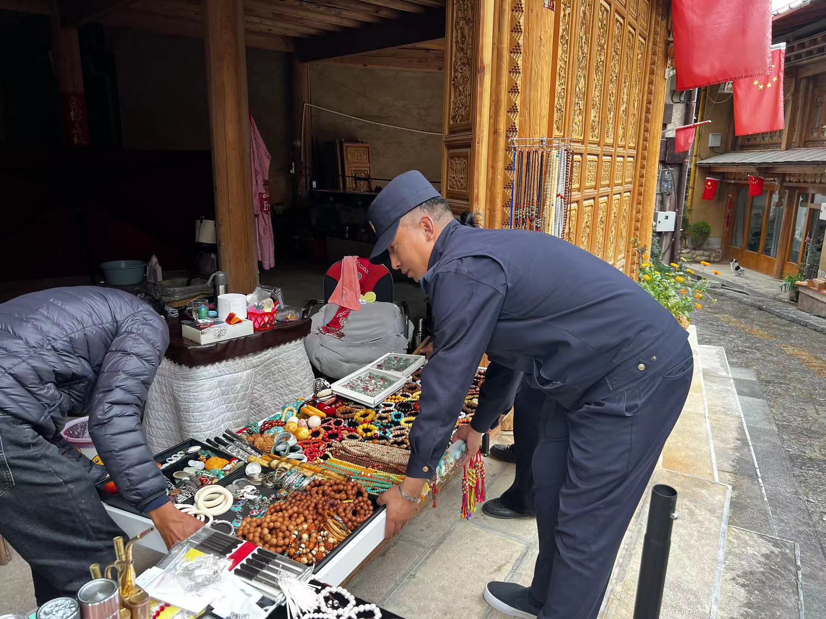 整治過程中,綜合行政執(zhí)法人員全天候無縫巡查,重點(diǎn)對(duì)出店經(jīng)營、占道經(jīng)營、亂停亂放、流動(dòng)攤販無序擺攤等問題進(jìn)行整治。排查月光廣場等公共區(qū)域擺攤?cè)藛T,凡屬古城內(nèi)商戶的一律要求返回店內(nèi)買賣;屬于流動(dòng)攤販的及時(shí)引導(dǎo)至劃定的攤位;對(duì)古城內(nèi)所有亂停亂放的機(jī)動(dòng)車和非機(jī)動(dòng)車,及時(shí)找到使用人,要求停放至指定區(qū)域,確保游客出行更加方便,市容更加整潔有序。圖為綜合行政執(zhí)法人員在勸導(dǎo)占道經(jīng)營攤點(diǎn)。