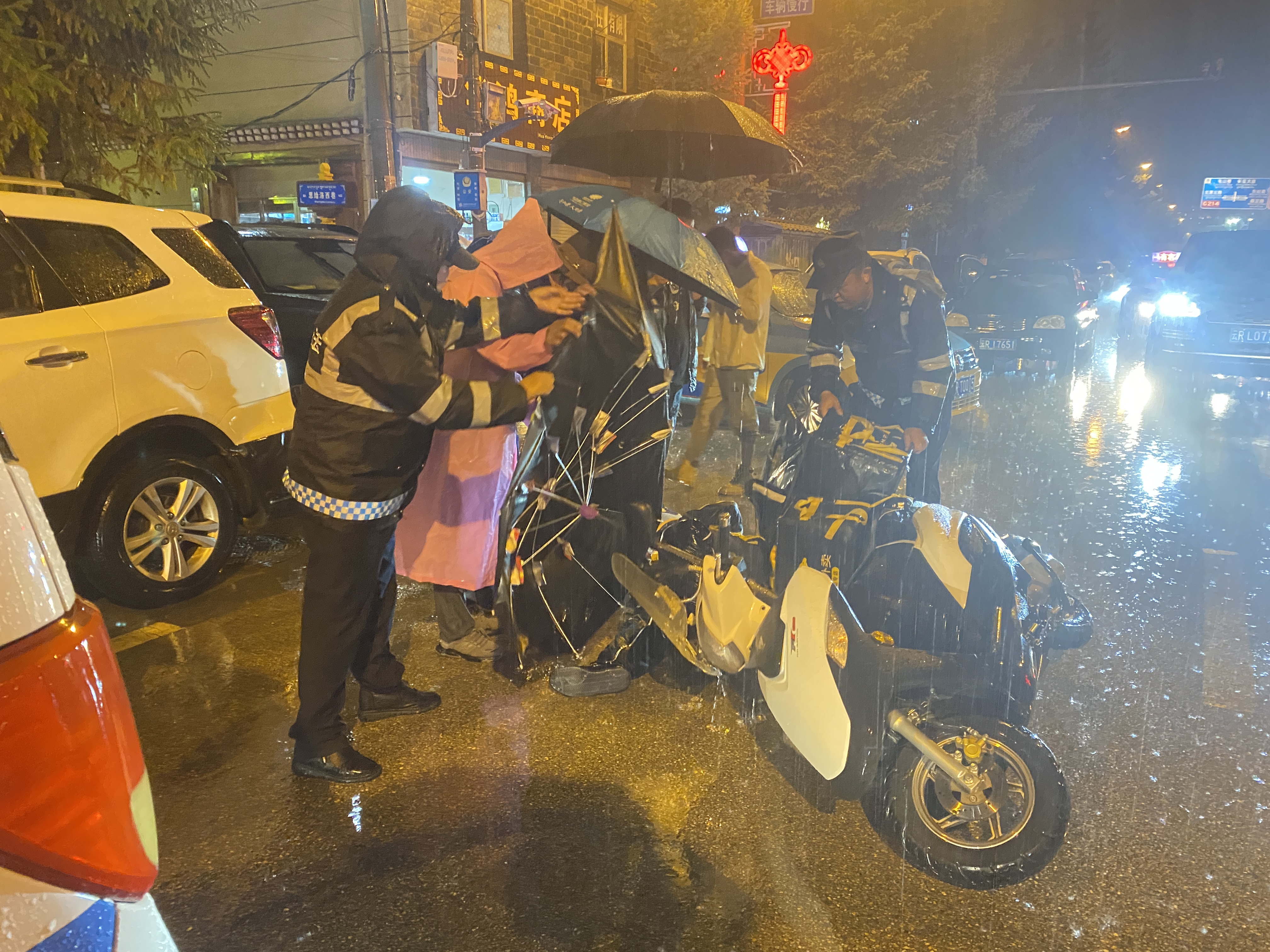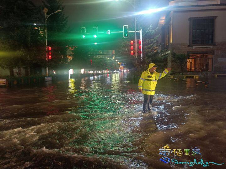 8月6日,受強(qiáng)降雨影響,香格里拉市城區(qū)部分路段出現(xiàn)不同程度的內(nèi)澇和雨水倒灌現(xiàn)象。香格里拉市城區(qū)陽塘路、壇城北路、池慈卡街等道路嚴(yán)重積水,出行受阻,隱患增多。為保障群眾安全出行,香格里拉市公安局直屬城市交警大隊第一時間啟動防汛應(yīng)急預(yù)案,全力開展交通疏導(dǎo)、隱患排查,通宵達(dá)旦排水排澇、搶險清障、救助群眾,扛起保障道路安全暢通的重?fù)?dān),為市民雨夜出行撐起“安全傘”。