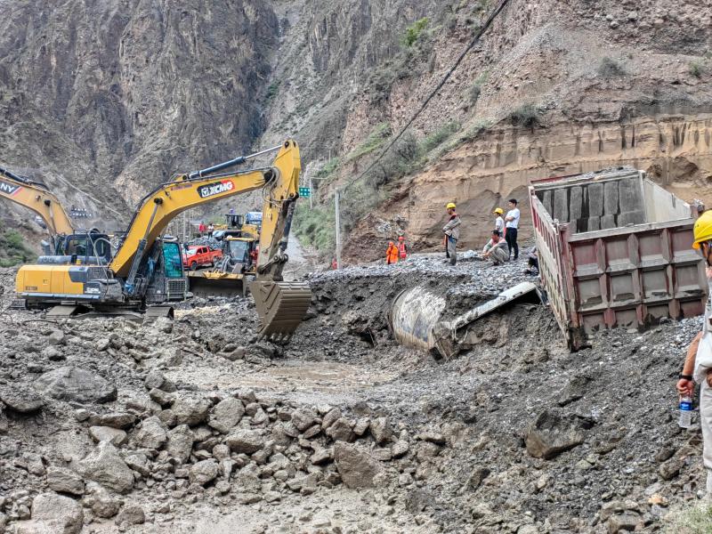 近日,受持續(xù)強(qiáng)降雨影響,G214線佛山鄉(xiāng)古水村附近K1911+750處發(fā)生泥石流災(zāi)害,造成交通中斷。德欽公路分局立即啟動(dòng)汛期保通應(yīng)急預(yù)案,第一時(shí)間組織應(yīng)急搶險(xiǎn)人員趕赴現(xiàn)場(chǎng),4臺(tái)裝載機(jī)、2臺(tái)挖掘機(jī)、4臺(tái)運(yùn)輸車全力投入搶通工作中,并協(xié)同交警實(shí)行交通管制,疏散滯留車輛。經(jīng)過多部門搶險(xiǎn)保通作業(yè),受阻路段順利實(shí)現(xiàn)半幅通行。圖為現(xiàn)場(chǎng)正在清理鏟運(yùn)泥沙。