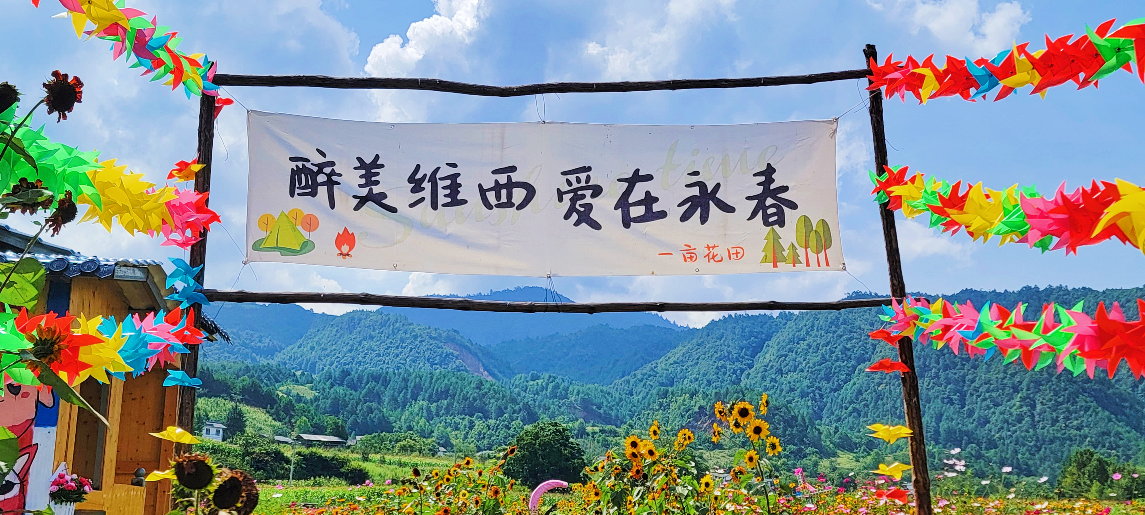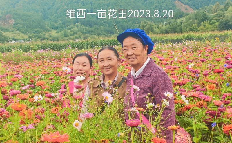 楊躍成把花卉基地起名為“一畝花田”,其實不止一畝。今年6月中旬開始,各種花卉爭奇斗艷、競相綻放。金燦燦的萬壽菊、金雞菊、格?;ǖ葏R成了花的海洋,成為永春鄉(xiāng)拖枝村的一道靚麗風(fēng)景線,每天都有維西縣城市民及周邊游客前來看花賞景,特別是周末游客絡(luò)繹不絕。
