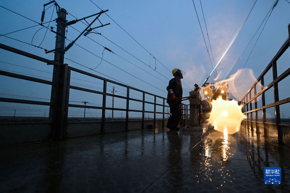 “針對‘萬丈鹽橋’所處鹽湖的特殊路基狀況,在設備的整治上,我們堅持‘一點都不能差,差一點都不行’的線路設備維修理念?!备駹柲竟斩沃鞴苌a(chǎn)副段長王楨睿說,為了全面提高旅客列車通過的舒適度,格爾木工務段對無縫線路落實精細化改道,嚴格落實直線地段誤差±0.5mm、曲線地段-1.5mm至-0.5mm以內(nèi)的技術(shù)標準;在道岔方向軌距全方位整治的基礎上,重點突出“岔心全斷面打磨”整治方法,極大地提升了動車通過道岔能力和旅客乘車舒適度。