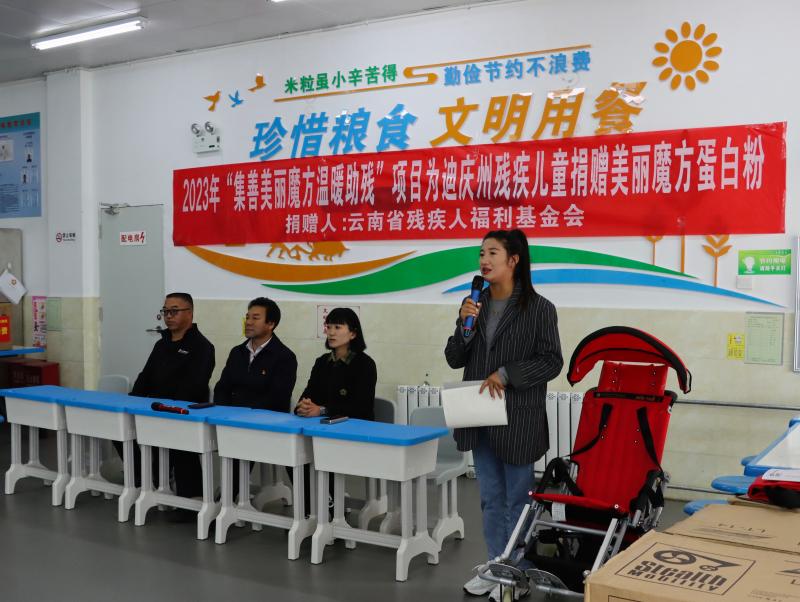 近日,云南省殘疾人福利基金會為我州康復中心和香格里拉市特殊教育學校殘疾兒童捐贈了12架兒童輪椅和178罐美麗魔方蛋白粉。這是自云南省殘疾人福利基金會將我州列為2023年“集善美麗魔方溫暖助殘”項目點后的第一批捐贈。