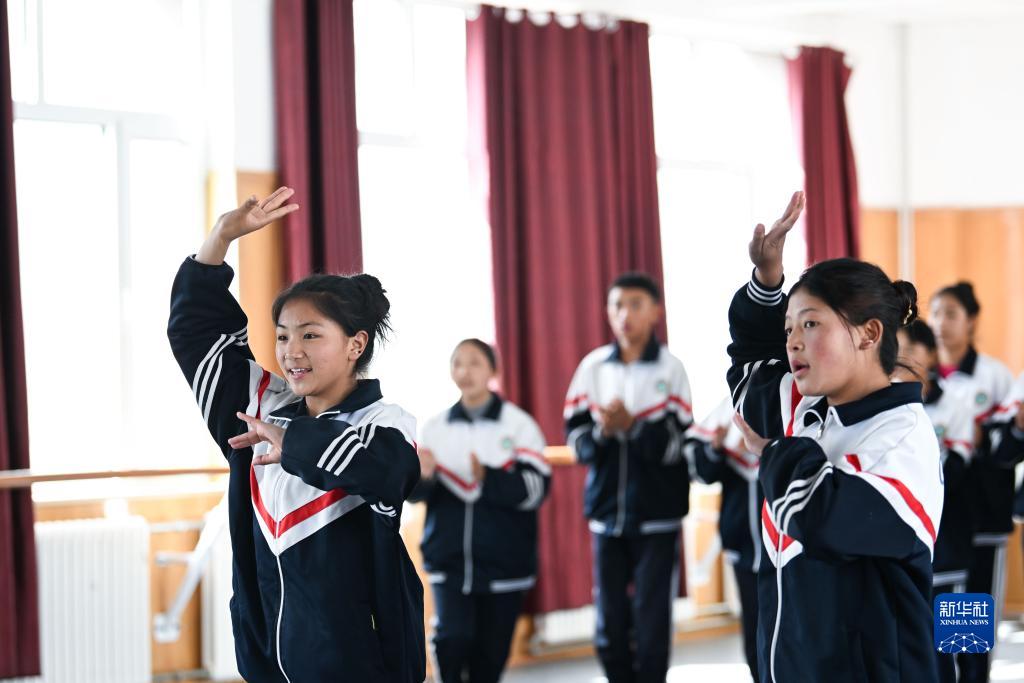 9月8日,在果洛藏族自治州職業(yè)技術(shù)學(xué)校,學(xué)前教育專業(yè)學(xué)生在上舞蹈課。新華社記者 張龍 攝